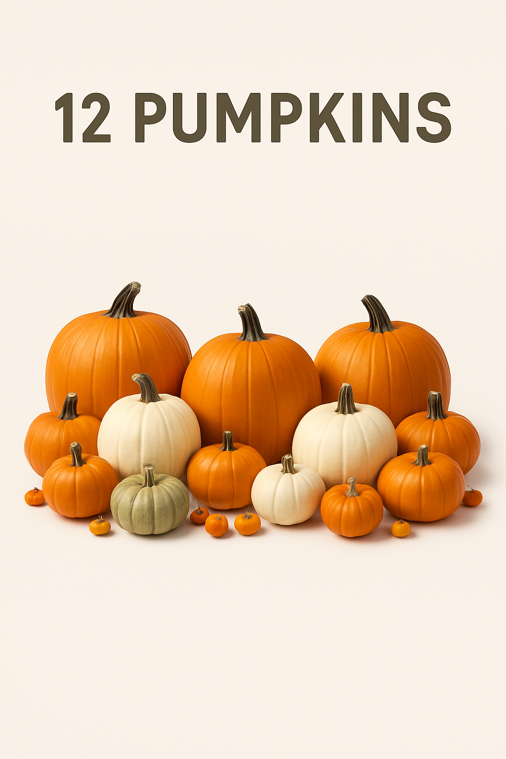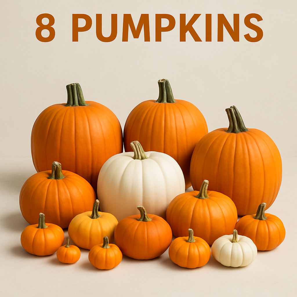 CONTACT US AT: 636-829-3680 FOR 🚚 SAME DAY DELIVERY 🎃 12 Pumpkins (Assorted) $105.00 10 Pumpkins (Assorted) $90.00 8 Pumpkins (Assorted) $75.00 6 Pumpkins (Assorted) $60.00